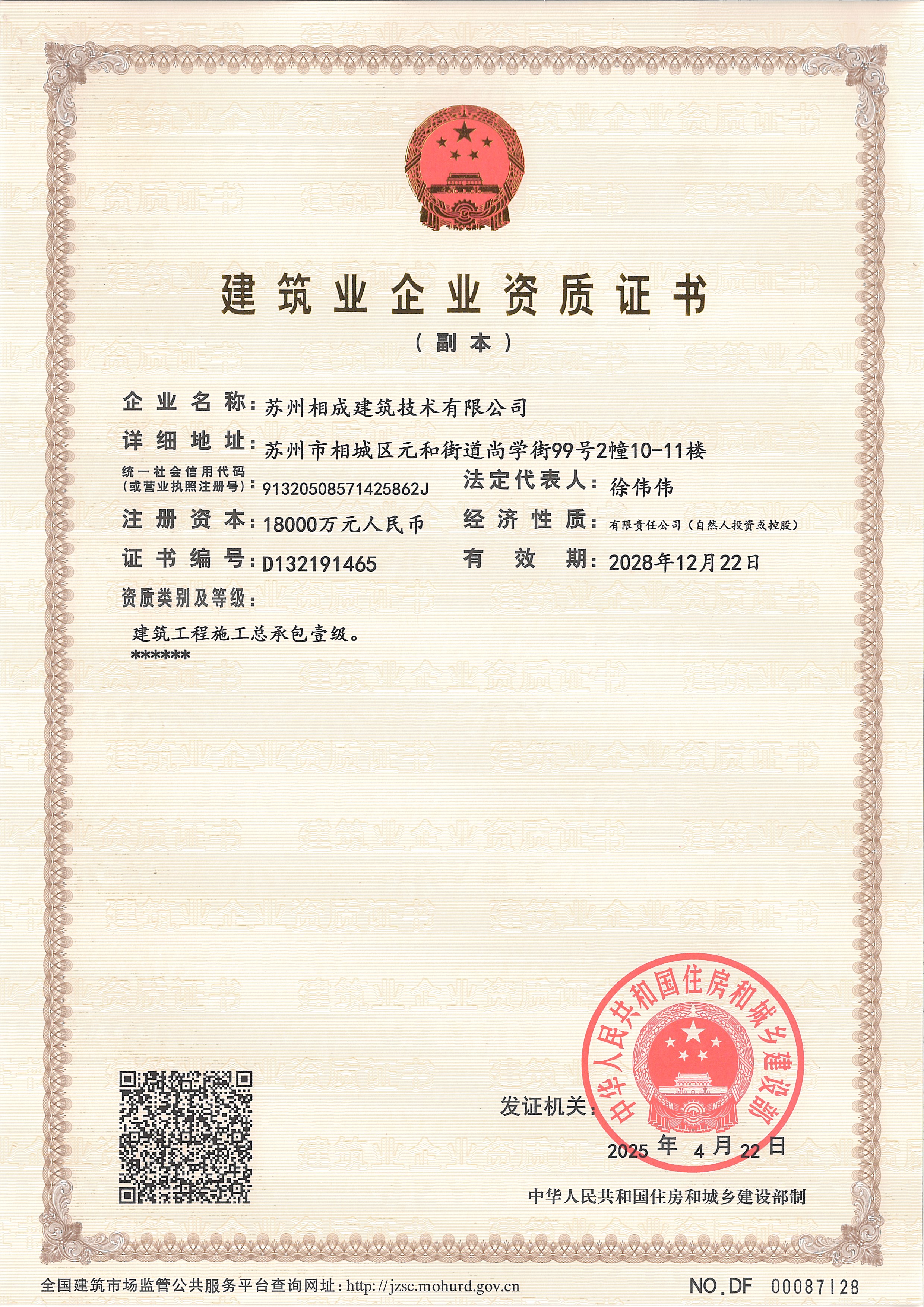蘇州相成建筑技術有限公司是一家以提供建筑開發服務為主的建筑企業,公司位于蘇州市相城區,成立于2011年3月,注冊資本 10000萬,歷經13年的努力于2022年7月獲省住建廳頒發房屋建筑工程施工總承包壹級資質,市政公用、建筑裝飾、地基基礎、消防設施、鋼結構工程等專業承包二級資質; 2023 年6月份增設房屋建筑工程監理甲級、市政一級監理資質;目前是相城區唯一一家集施工總承包一級和建筑工程監理甲級資質的企業。